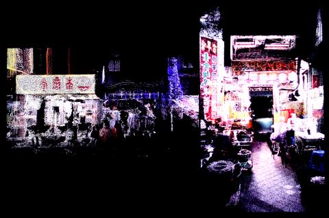 Hung Yu-hao’s (洪譽豪) The Hallway of City No. 1 (城市穿廊計畫No. 1) transforms Taipei’s oldest neighborhoods into a pathway that viewers “walk” through on a manually-powered treadmill. Even as it captures rich, lived-in architecture, the still landscape, which dissolves into unrecognizable points of light upon closer inspection, is a melancholy reminder of transience and how such historic spaces are being destroyed by the march of progress.