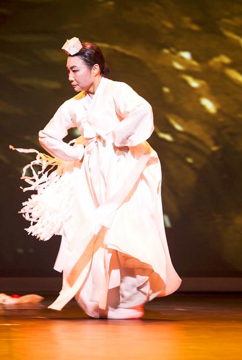 A white-clad Lee Ae-ju’s shamanistic-inspired dance, inspired by the torture and suffering of dissidents, was aimed at consoling the activist’s soul and appeasing the political grudges that had divided the nation.