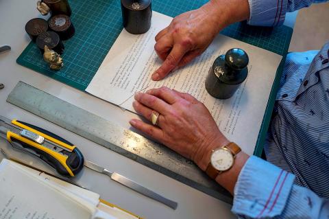 Carefully aligning two scraps of papers, holding each side down with paper weights before firmly sticking them together, Poenisch underlined that the key to her job is not only patience, but more importantly, recognition of the “huge responsibility” it carries.