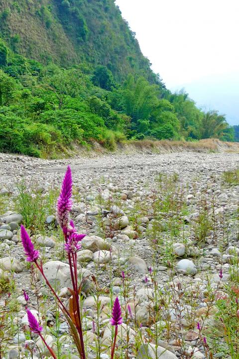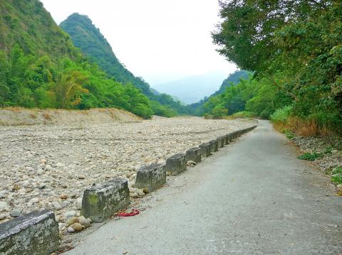 Some 1.6km beyond Shihjhuo Bridge, I came to the signboard and another bridge. By crossing the bridge, was I entering the nature reserve? A sign said the biking route ended here, but there was no gate or barrier. I kept going on a concrete track that stayed very close to the creek, slowing often to avoid small rocks, distracted by the sheer number and variety of butterflies.