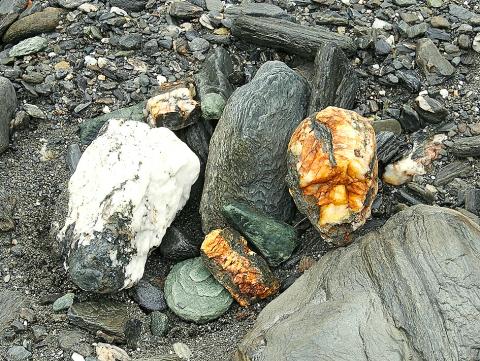 A few minutes later, a different natural phenomenon grabbed my attention. The creekbed’s rocks and cobbles presented four distinct colors. Most were ash or dim gray, but among them were marble-like whites, rusty and tawny browns, as well as jade and sea greens. The final category intrigued me, and not just for aesthetic reasons. As the crow flies, Hongye Creek is almost 50km south of Baibao Creek (白鮑溪), which was once a nephrite source of global importance. Nephrite is one of the two types of jade.