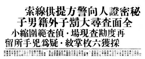 Jacobs found out about the murders that evening at the hospital where Lin’s wife and surviving daughter were staying. The next day, the United Daily News became the first outlet to call him “big beard” in the page 3 headline, “Secret witness gives police clue, full-scale search for big-bearded foreign male.” Jacobs writes that he had visited the Lin house the previous day around 6pm and nobody answered the door. The article claimed that he visited around noon, shortly before the murders happened.