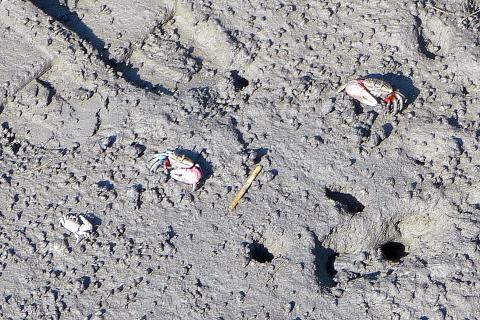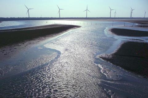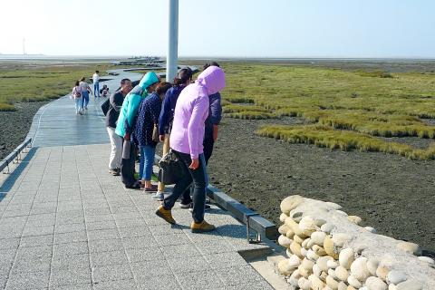 The wetlands, which lie between the mouth of the Dajia River (大甲溪) and the Port of Taichung (台中港), didn’t exist half a century ago. The building of Gaomei Levee in 1976 led to a rapid accumulation of silt and sand. This, coupled with erosion along the southern shore of the Dajia River estuary, resulted in an expanse of tidal mudflats.