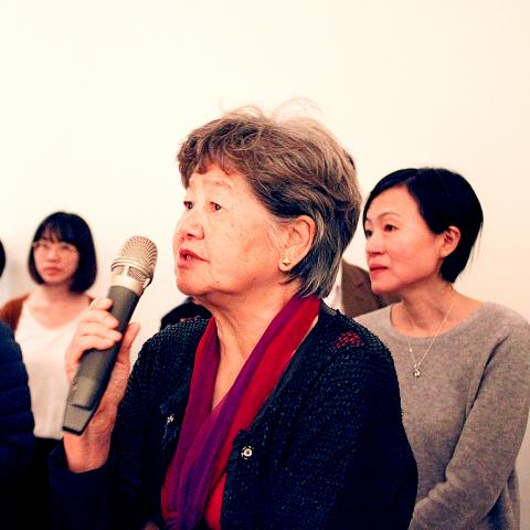 Artist Tung Yang-tzu speaks at the opening of her first solo retrospective Moving Ink last week.