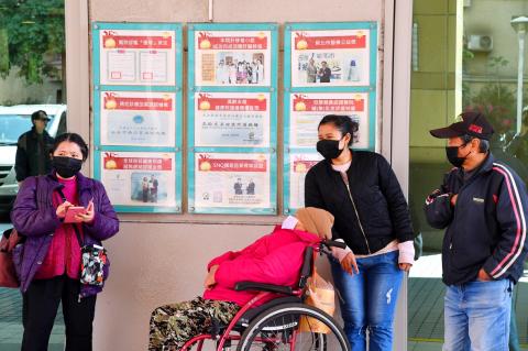 The fishermen are the worst case scenario, but Lennon Wong (汪英達), director of Serve the People Association (桃園市群眾服務協會), says other migrant workers are also at risk. Many caregivers care for the elderly and sick and frequently visit hospitals, while factory workers usually live in close quarters at company-provided dorms.