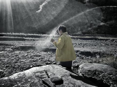 Our guide Xiaoyang (小楊) stands on an embankment overlooking Pingtung’s Ailiao River (隘寮溪) at the foot of Jingbu Mountain (井步山) and assembles, in groups of three, cigarettes and betel nuts on the surface of a large rock. After lighting the cigarettes, he pulls out a plastic bottle, takes a swig and spits it into the wind three times, each time misting the air with the scent of rice wine. The ritual finished, Xiaoyang tells me the mountain gods have been appeased.