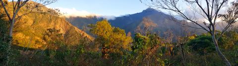 We maneuver up a rockslide to reach the trail proper and as we ascend from 300 meters to 400 meters, kilometer-long landslides scar the mountains far and near. The temperature is an unseasonable 27 degrees Celsius, the overgrown jungle in parts shading us from the sun.
