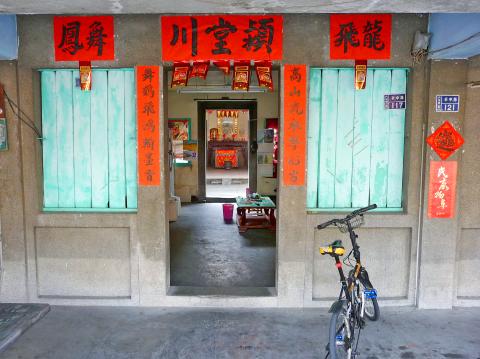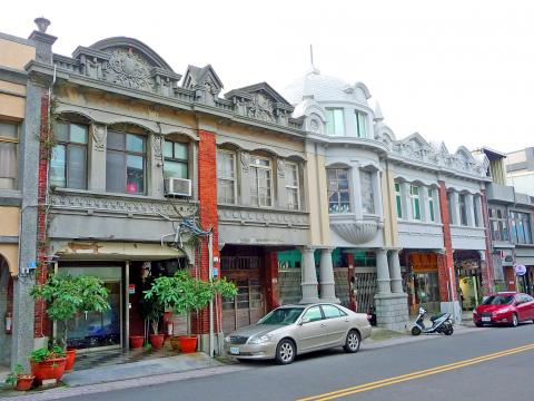 The neighborhood’s most ostentatious building is at numbers 12 to 20 Jhongjheng Road. The Fugang Lu Residence (富岡呂宅), completed in 1929, is the width of five shophouses but otherwise typical of its Baroque-influenced era.