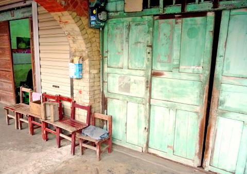 The most eye-catching structure stands at the southern end of the old street, on the corner of Sinjhong Road and Huijhong Road (懷忠路). The former Hongsiangyun Grocery Store (鴻祥雲雜貨店) hasn’t been occupied for a long time, and a fence stops urbexers from getting inside.