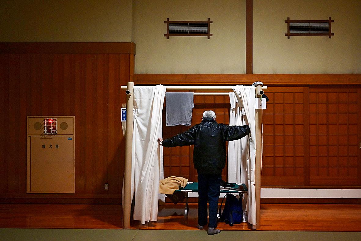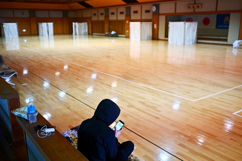 One 58-year-old occasional construction-site worker said his main aim was “avoiding getting wet,” as he found a roof over his head at a shelter converted from a martial arts center in Yokohama near Tokyo.