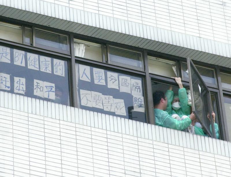 The chaos in the hospital was recorded in hospital pediatrician Lin Ping-hung’s (林秉鴻) diary, which was serialized in the Liberty Times (Taipei Times’ sister newspaper). He writes that there were few directions on how exactly to carry out the quarantine, and the hospital was pretty much “under anarchy” in the first few days.