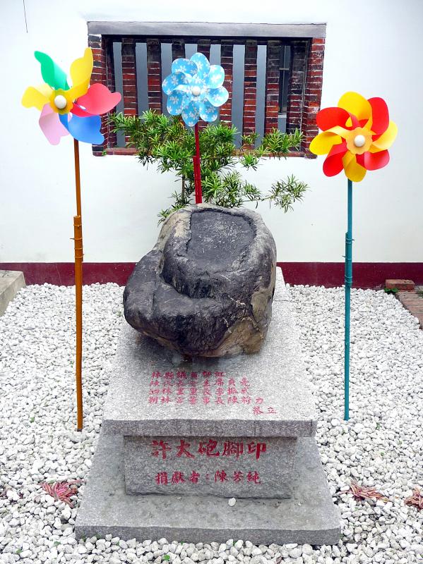 The temple also displays the Hsu Ta-pao Footprint (許大砲腳印), a stone with a footprint-like indentation, apparently left by a giant-like man whose behavior alternated between the heroic and the embarrassing.