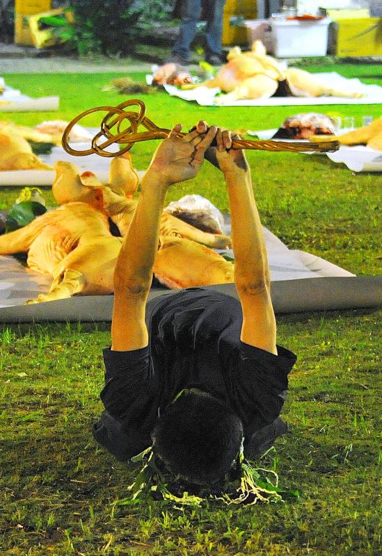 The two components of Pataran’s Night Ceremony is the pig sacrifice and qianqu (牽曲), where female dancers link hands, sing and move in a circle around a large urn.