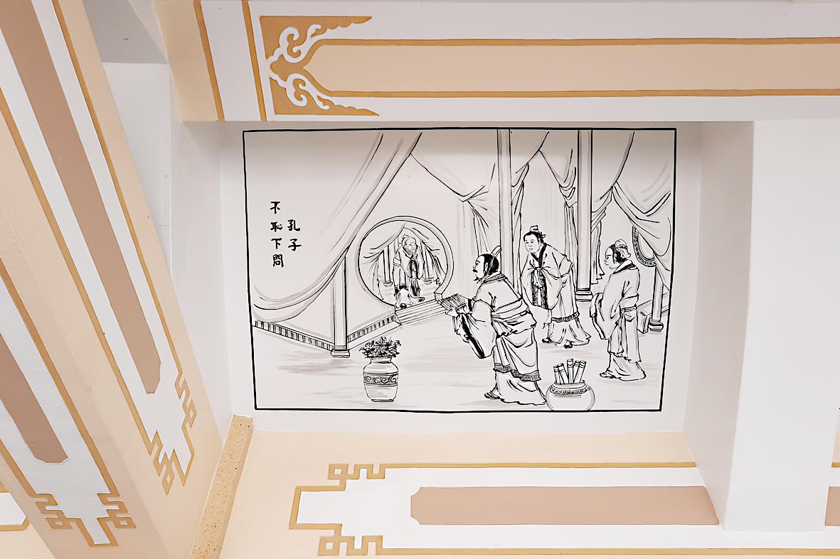 One of the rectangular images high up on the left portrays Muhammad and his followers; all wear white robes and Saudi-style kufiya. There’s some text, including the Chinese character hui (回), an abbreviation for Islam. In other countries, visual depictions of Muhammad have aroused huge controversy.