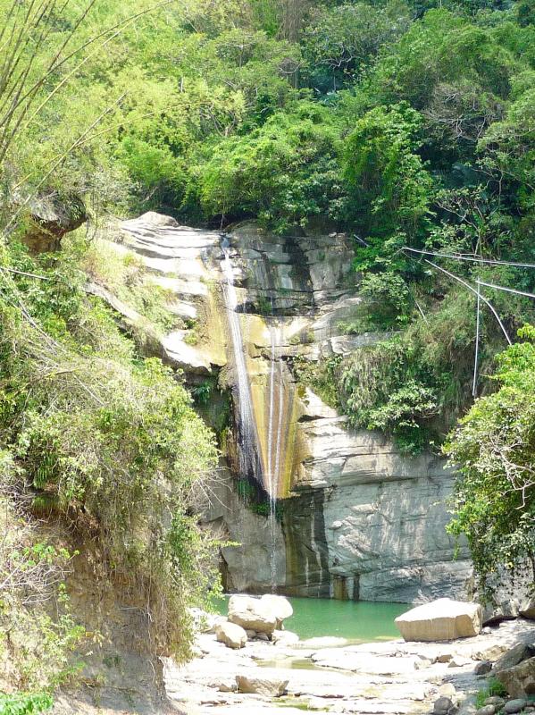 The little lakeside town of Dapu has a gas station where I filled my tank. Continuing north on Highway 3, I crossed the Zengwen River and made a short detour to Cingyun Falls (青雲瀑布). I didn’t expect an impressive torrent — this was a week before the “plum rains” began — and so wasn’t disappointed to see just a few braids of water.