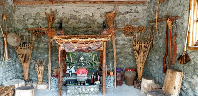 We were handed some betel nuts to place beside the other two essential offerings: cigarettes and rice wine. The centerpiece of the shrine — similar in size to the Earth God shrines that exist throughout Taiwan’s lowlands — is an urn. It contains xiangshui (向水, water blessed by the highest ancestral spirits), and this is where the Tevorang ancestors reside.