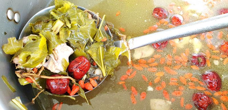 We had mulberry leaf tempura; green papaya salad; steamed pork wrapped in shell ginger leaf; long-bean congee; chicken soup with ashitaba, jujube and goji berries; snails cooked three-cup style and two dishes made with Cordia dichotoma, a preserved berry that serves a similar function in Chinese cooking as does the caper in western cuisine. One was stir-fried with bitter melon, while the other was with egg. Cordia drupes have been an important food in south Taiwan for at least six hundred years.