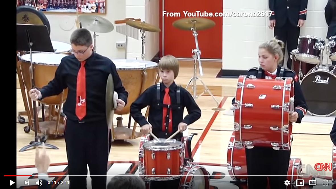 I think what I love most about this video is that you can see each individual thought enter the poor boy’s mind. There’s a moment, just as he places the remaining cymbal on the ground, where you can almost see the A Beautiful Mind calculations swirling around his head, while he slowly derives this perfect solution.