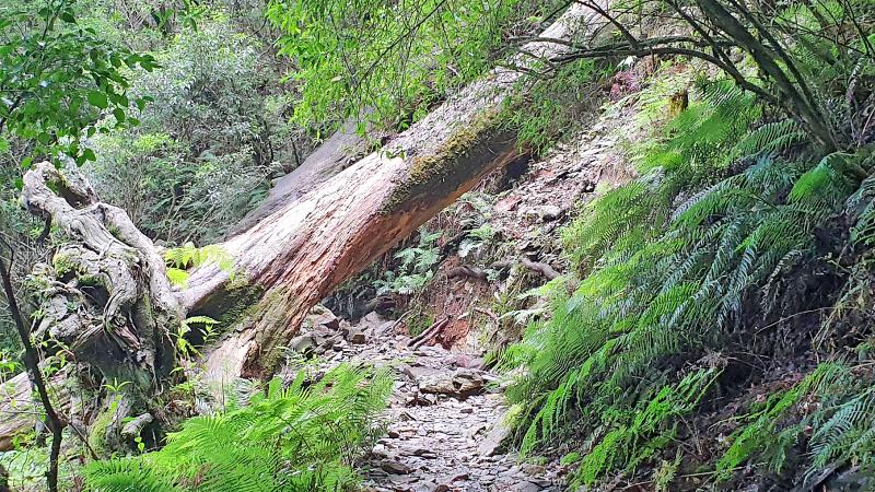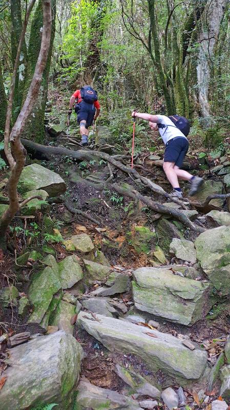 The trail is rather rough as we climb over boulders, duck underneath fallen tree trunks and trudge up steep hills of gnarled roots and stone. It was drizzling the previous day so the path was muddy and slippery, and there wasn’t much of a view.