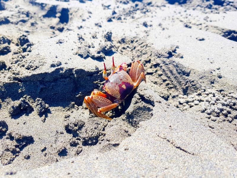 Most tourists spend their hour on the sandbar exploring the coastal marine life. Despite its desolate appearance, the sandbar is actually teeming with organisms that prefer the sheltered, shallow, sandy environment. At low tide, look closely and you may see a collection of tiny rubbery straws sticking out of the sand, made by resident tube worms. Keep your eyes peeled for the feisty orange horn-eyed ghost crab, or the smaller sand bubbler crabs, which leave the beach littered with tiny sand pellets. Finally, there are large hamaguri clams hiding in the sand. The tourist boats usually bring along rakes and shovels that tourists can borrow.