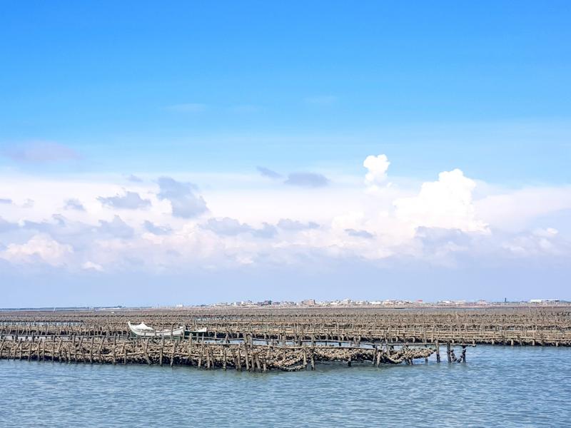 Ten kilometers off the coast of Dongshih (東石) Fishing Harbor in Chiayi County, a long stretch of sand rises up from the seafloor, forming Waisanding Sandbar (外傘頂洲). This unassuming mass of sand is economically important for two reasons: Not only does it generate local tourism revenue from curious visitors, but it also offers protection to Dongshih’s offshore waters, Taiwan’s largest oyster-producing region.