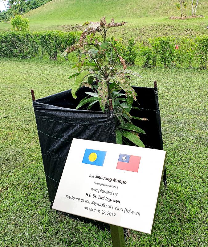 Some fields in Namasia are used to grow Jinhuang (金煌) mangoes. This highly popular variety is named after the Taiwanese farmer who spent 12 years developing it, then considerable time improving its appearance and taste. The Jinhuang mango last year received the presidential seal of approval when President Tsai Ing-wen (蔡英文) planting a Jinhuang cutting while visiting Palau.