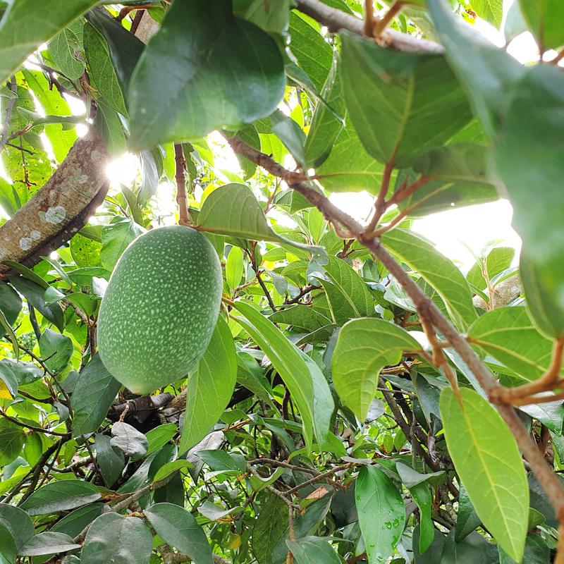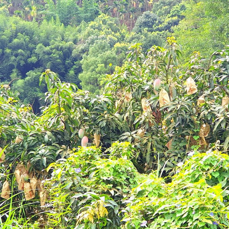 Alas Istandah, a local indigenous woman who co-manages a restaurant and a campsite, identified intertwining aiyu (愛玉, an endemic subspecies of Ficus pumila used to make a jelly dessert) among the mango trees.