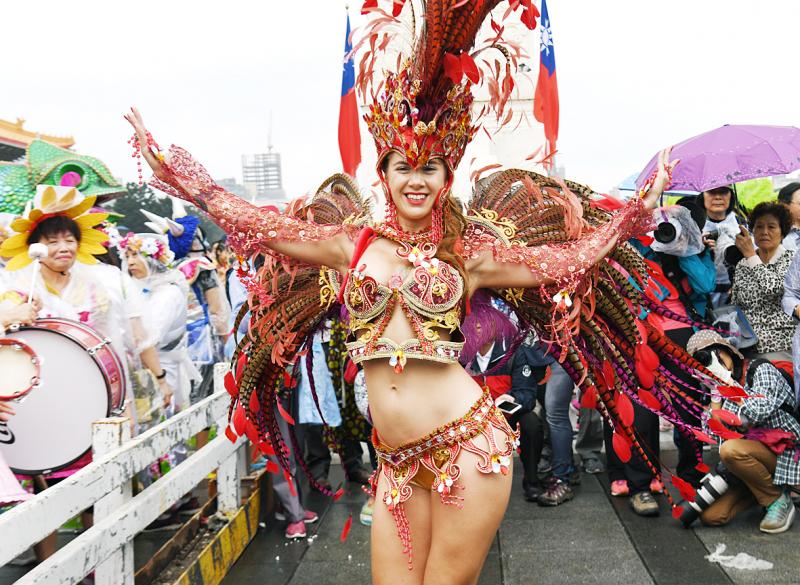 Forty teams will be marching/performing in the parade, which is scheduled to start at 3pm from Chongqing Road — near Fuzhong MRT Station Exit 2 — before heading down Zhongshan Road to Xinfu Road to Xianmin Boulevard and the New Taipei City Plaza, near Banciao Station.