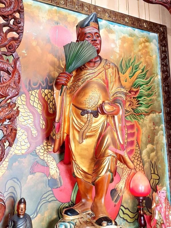 Sometimes called “the drunk monk,” he’s often portrayed as unkempt and intoxicated. The statue that occupies the central position in Ji Gong Temple depicts the monk as a rakish, Errol Flynn lookalike. A gourd-type bottle dangles from his left hand.