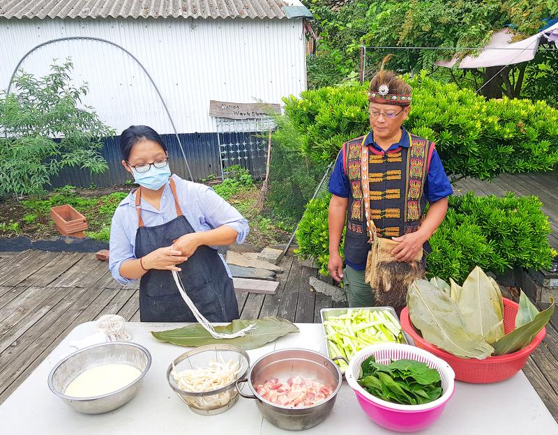 Our stop at the Chialan Community was sandwiched between an early-morning visit to Taimali Township’s (太麻里) Lalauran Millet Workshop (拉勞蘭小米工坊), where we made qavai, a fermented millet-based dumpling from the Paiwan community, with pork, taro stalk and mushrooms that is wrapped in shell ginger leaves. While visiting Chialan, our dumplings would be steamed and served upon our return.