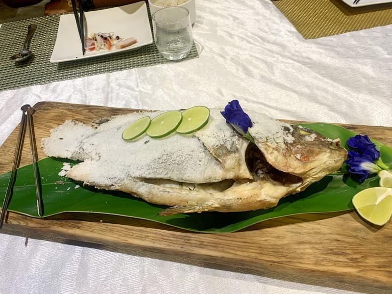 Village-style grilled fish followed the pork. This Amis specialty is white fish grilled over an open flame after being marinated with a mixture of salt, garlic and tana, a traditional Amis herb. Most of our party agreed that the marinated mixture topped with a squeeze of lime and moist flesh was the highlight of an already outstanding meal.