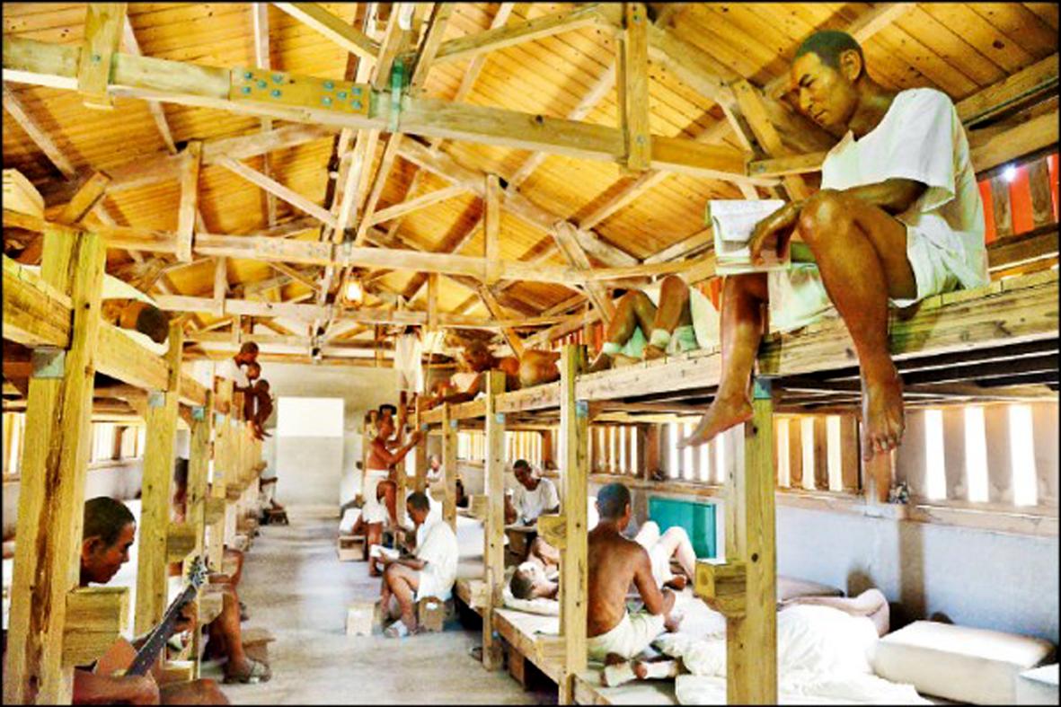 Oasis Village, located 1km from New Life, offers visitors a different, somewhat more dreary, view of prison life. Whereas the wooden bungalows that make up New Life emphasized the day-to-day tasks of inmates, Oasis confronts the visitor with the drudgery of prison life: towering stone walls emblazoned with slogans and topped with razor wire, the “Eight-Sided Building (watching four corridors),” with its individual cells and solitary confinement, that overlooks a central courtyard.