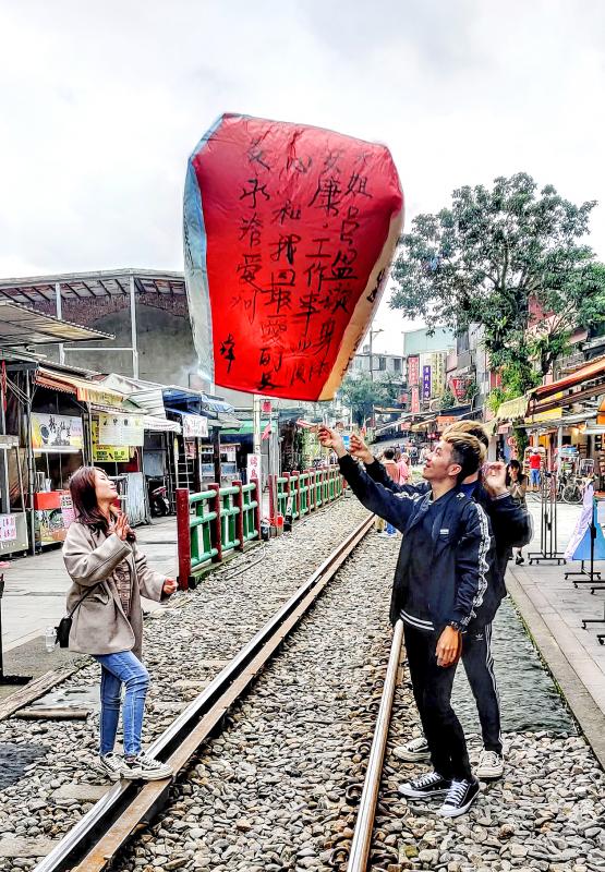 Pingsi’s economy in the post-coal era is based on tourism but, unlike just about everywhere from Shenkeng and Yonghe to Taichung and Tainan, has nothing to do with food. Rather, it involves buying a paper lantern, writing auspicious words on the sides, lighting some kerosene-soaked paper underneath and watching it ascend into the sky.