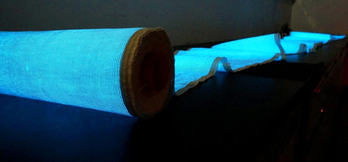 After testing different combinations, they settled on a silver-plated yarn warp coated with luminescent composite, and a conductive weft spun from a kind of gel.