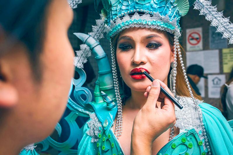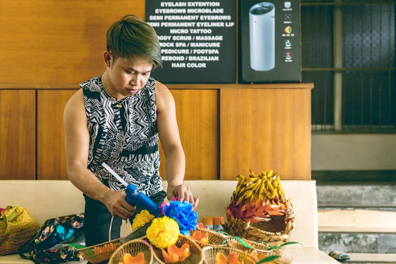 Seven years later, Reyes is still working long hours at another factory, but his makeup skills have led to him becoming one of the Filipino migrant community’s most sought-after fashion designers. He generally works on his costumes after his 12-hour graveyard shifts, and spends the few weekends he has off putting on runway shows, many of them charity events to help people in need back home.
