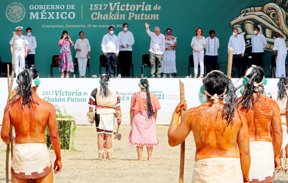 President Andres Manuel Lopez Obrador was accompanied by President Alejandro Giammattei of Guatemala, the neighboring country that has a majority Mayan population.
