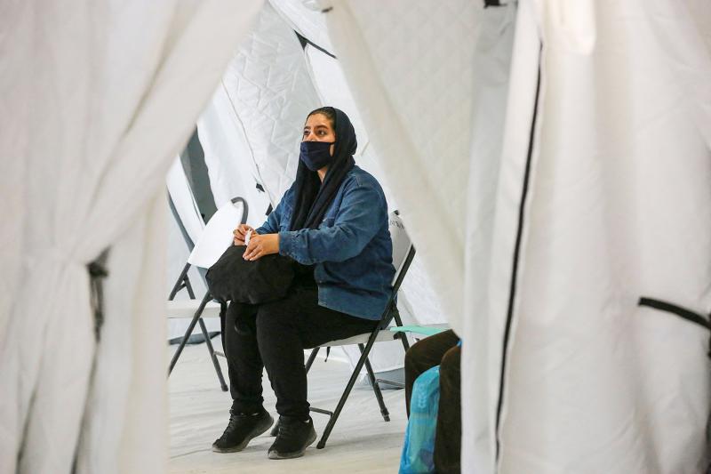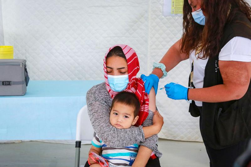 Medics checked the asylum seekers’ medical histories and informed them of possible side effects before administering doses of the Johnson & Johnson COVID-19 shot.