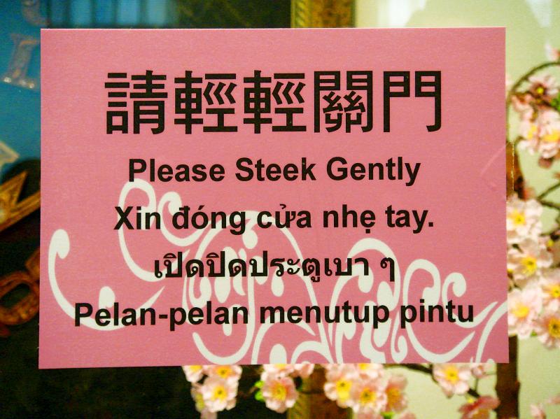 Maliksi, a Filipino who’s lived in Taipei since 1985, says Chinese-to-English translation accounts for about 70 percent of his company’s workload. He agrees with a complaint many in his industry make, that the often miserable quality of translations in Taiwan is due to a widespread unwillingness to pay for good work.