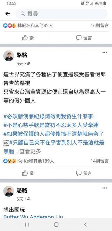 A Canadian who runs music events in Canada and Sweden and is now in Taiwan pointed out on Facebook in a comment under Frazier’s post that if he had made a similarly xenophobic comment like that in either of those countries, he would have been booted by his funding bodies immediately.