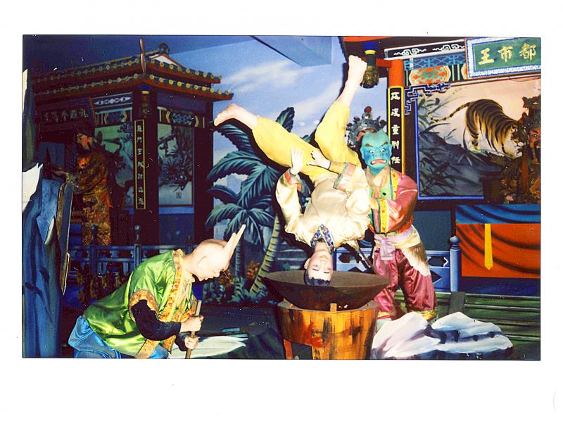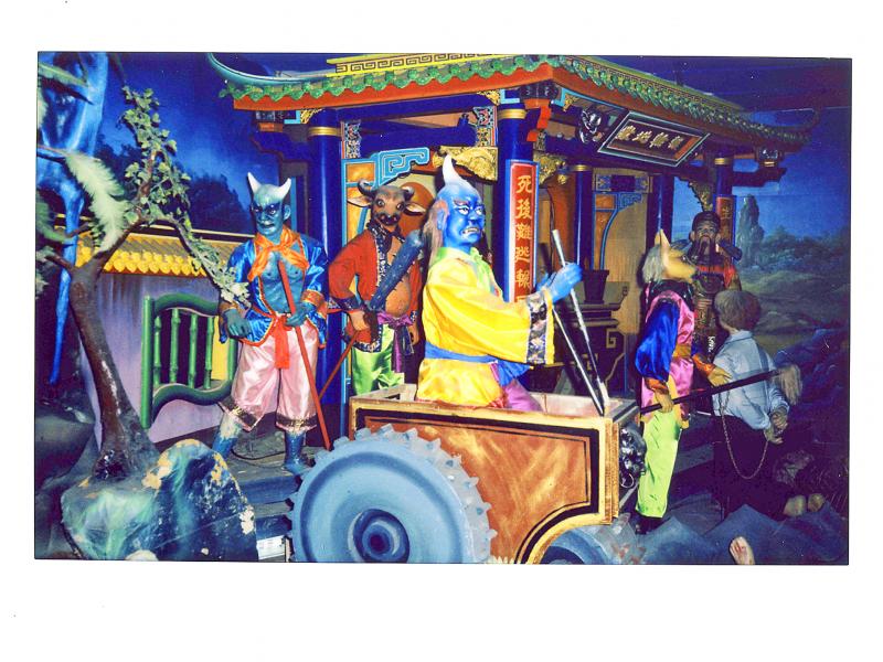 These dioramas of underworld torture can be found in numerous temples across Taiwan, most notably the bizarre animatronic scare-fest at Tainan’s Madou Daitian Temple (麻豆代天府) that’s touted as the bloodiest and most terrifying haunted house in the nation. For the past three years, Yao has been taking pictures of these displays, and on Sunday his latest photography collection, Hell+ (地獄空), was released to mark Ghost Festival.