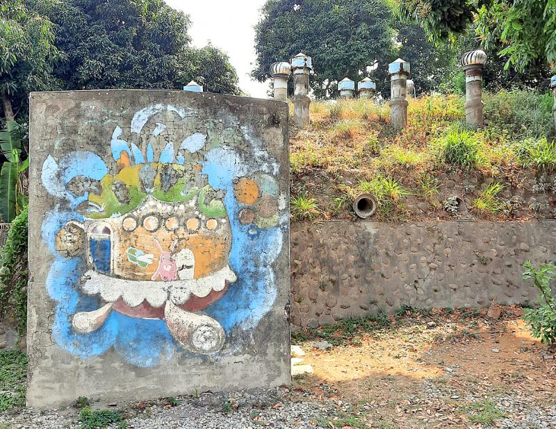 This part of Douliu is looking better than ever. The authorities have almost finished landscaping the canalized stream that Fucian Street crosses, and some intriguing structures nearby have been preserved.