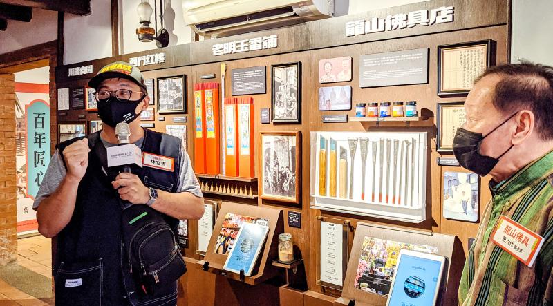 Longdu is one of 13 century-old Wanhua businesses featured in Bopiliao Historic Block’s A Century of Craftsmanship — The Wanhua Story (百年匠心:重拾萬華時光) exhibit, which opened yesterday after people were finally allowed to dine in without partitions on Tuesday. The mood was celebratory and speakers became emotional when discussing the outbreak, which hit Wanhua the hardest and saw the historic site turn into a rapid-testing station for over a month.