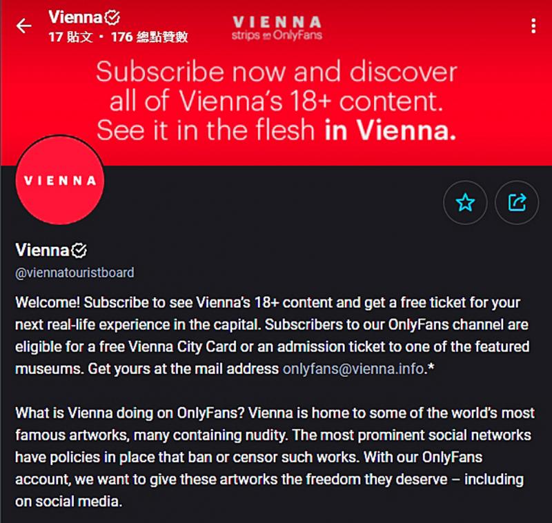 Vienna’s tourism board has started an account on OnlyFans — the only social network that permits depictions of nudity — in protest against platforms’ ongoing censorship of its art museums and galleries.