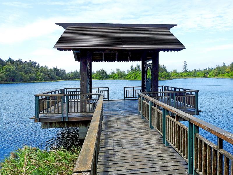 This 400-hectare site, managed by Taiwan Sugar Corporation (台糖, TSC) suffers from continuing subsidence. Rather than attempt to farm the land, TSC has turned much of it into a flood-detention basin that’s been dubbed “Yunlin’s Sun Moon Lake (日月潭).”