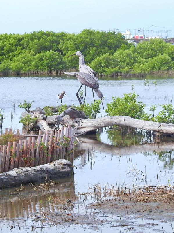 Waterfowl are quite happy, of course, with the terraqueous appearance of what’s now known as Chenglong Wetlands (成龍溼地). Apart from some egrets, I didn’t see many birds there, but I did enjoy the various installations that artists Lee Kuei-chih (李蕢至) of Taiwan and Lua Rivera of Mexico have added to the landscape.
