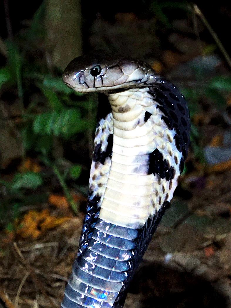 As we leave, the cobra lowers its hood and slithers away into the trees. A few steps on and we encounter another snake. Illuminated by our flashlights, the shape of a meter long snake slithers across the path right among their legs.