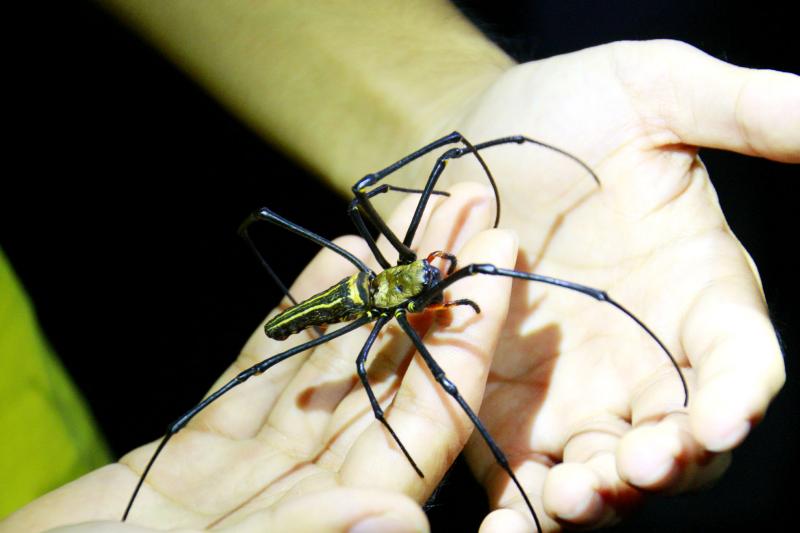 These large gold and black spiders are commonly seen at the side of Taipei’s mountain trails, sometimes even crossing the entire trail. Many have had the unpleasant experience of walking face-first into one of their webs, but having one crawl over your face may be a bit much for most.