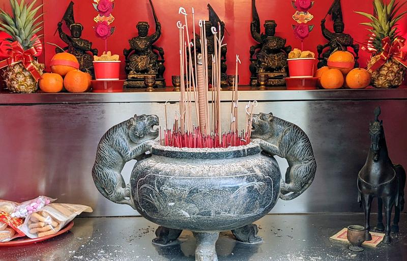 “With all this talk of ovo-lacto-vegetarianism and the sort, I became confused too,” Hsu says. “I asked the Tiger Lord, but he didn’t answer me. But one thing he insists on is having enough water,” pointing to the red urn of water at the altar.