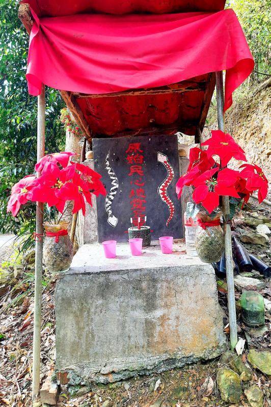 After the cemetery, I walked to Koushe Waterfall (口社瀑布), a few hundred meters northwest of the village. This being the dry season, it was an unimpressive trickle.