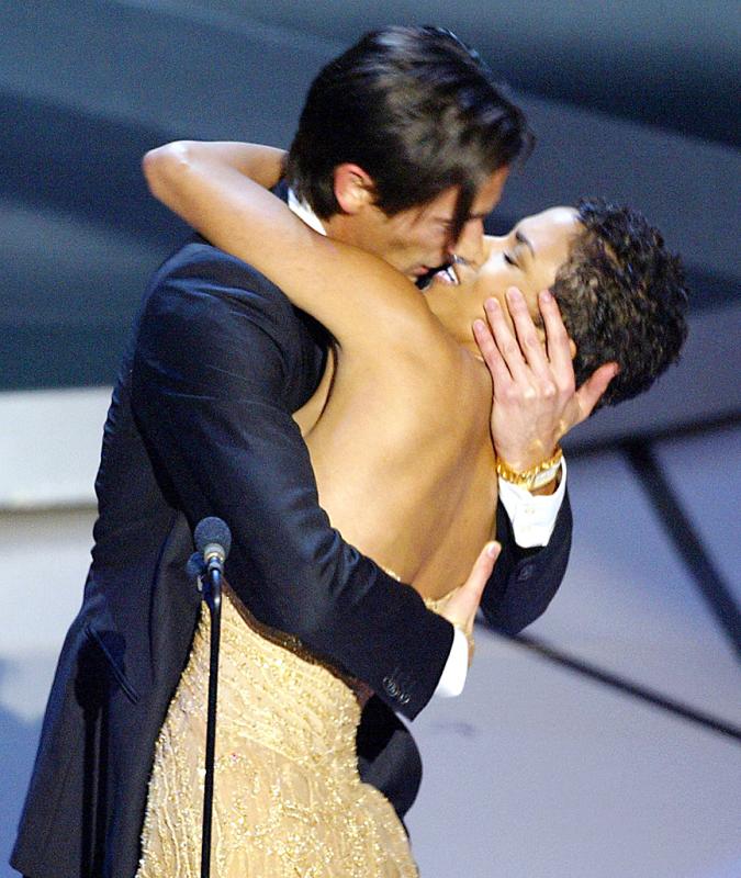 When he took the stage to accept his award from the previous year’s best actress winner Halle Berry, he stunned the audience — and Berry — when he swept her into a brief but passionate kiss on the lips.